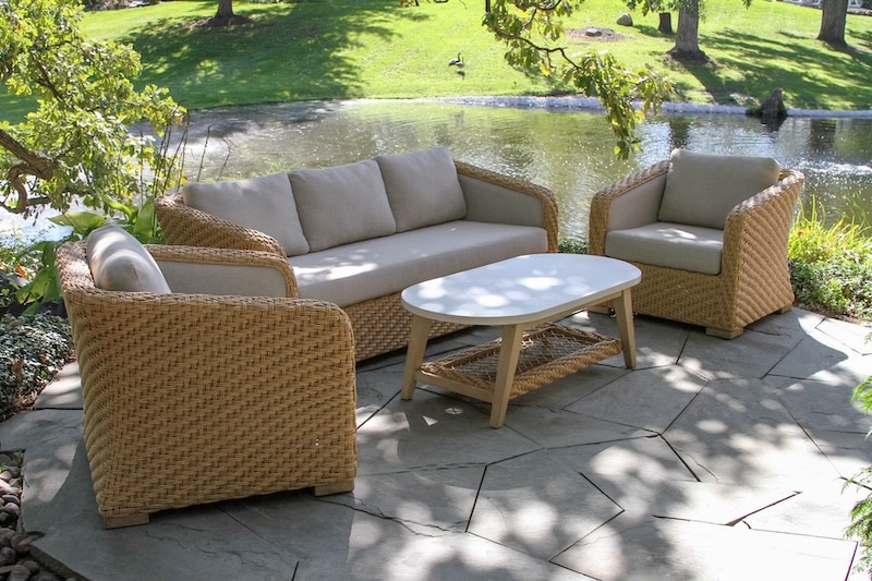 HDPE All-Weather Wicker, Solution-Dyed Polyester Fabric, Quick Dry Foam, Eucalyptus HardwoodComes Fully Assembled