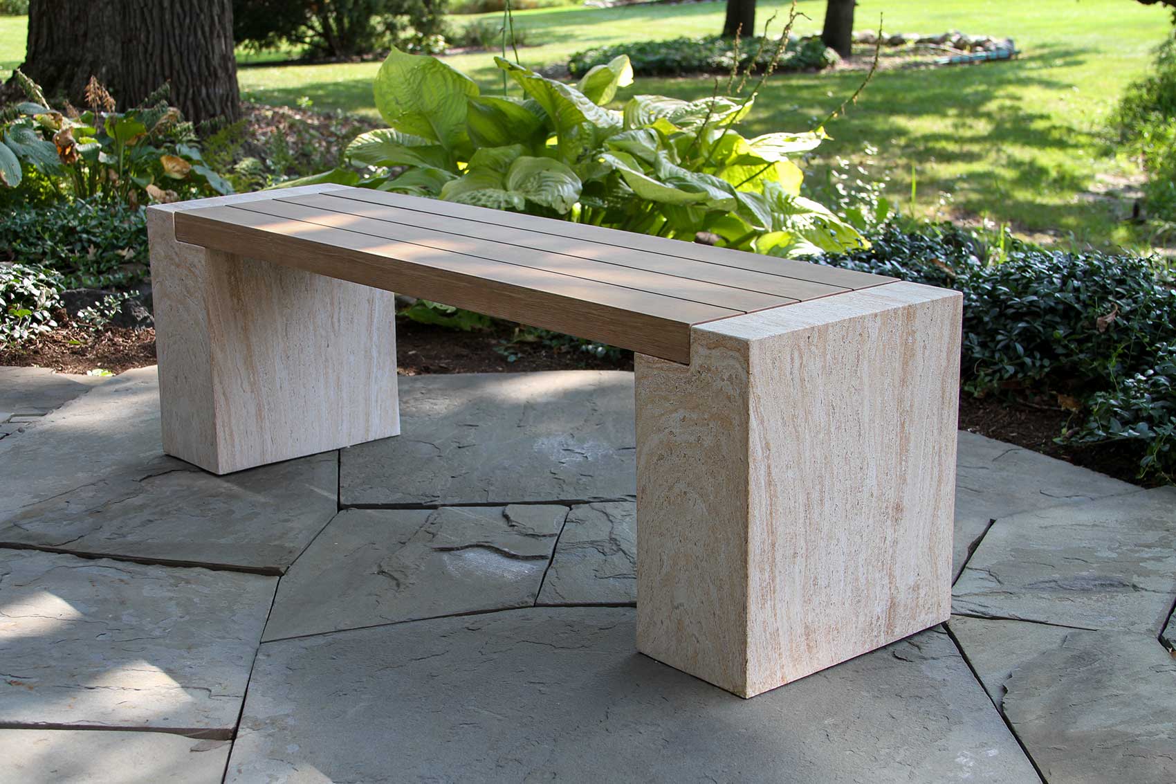 Complete your outdoor oasis with the elegant Antique Wash Eucalyptus & Travertine Composite Bench. Crafted for both style and durability, this bench features a warm eucalyptus wood seat in a rustic antique wash finish, offering natural charm and comfort. The sturdy base, made from composite material with the refined look of Travertine, provides a striking contrast that enhances any outdoor setting.