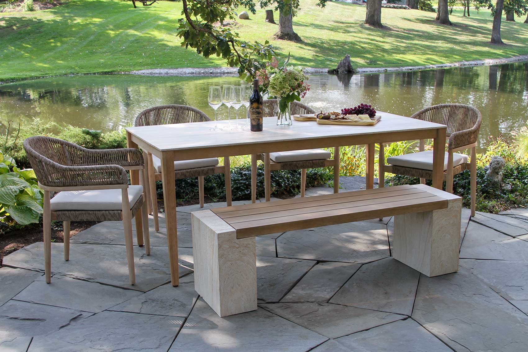 Antique Wash Eucalyptus & Travertine Composite Dining Bench