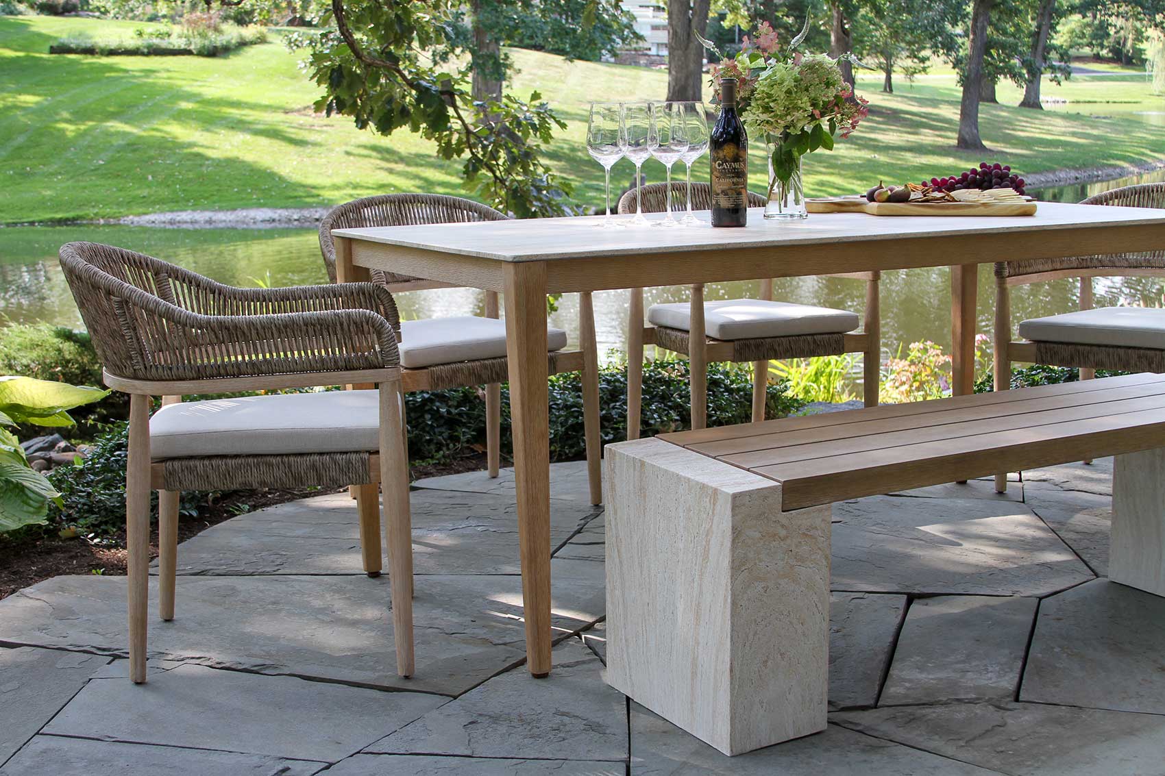 46415 – Antique Wash Eucalyptus & Travertine Composite Dining Bench