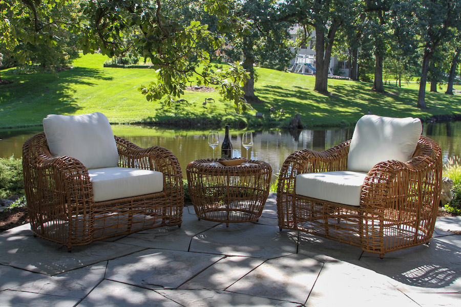 The “On the Vine” Set brings the luxury vineyard look to any patio. Fashioned with handwoven butterscotch-colored wicker and a deep breezy aesthetic. This accent table had a pop of golden teak elegance. The table comes fully assembled.