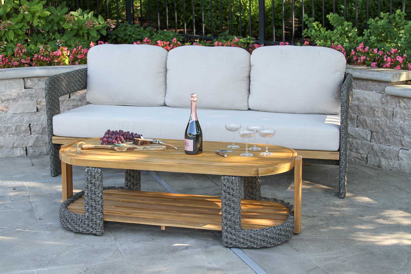 The Estate Coffee Table is the perfect piece to complement any contemporary space. This coffee table is made from FSC® certified teak hardwood and HDPE all-weather wicker designed for lasting performance in outdoor conditions. To finish the set, pair it with the matching sofa (TNA8800), swivel chair (TNA8888), armchair (TNA8811), or accent table (TNA8890).