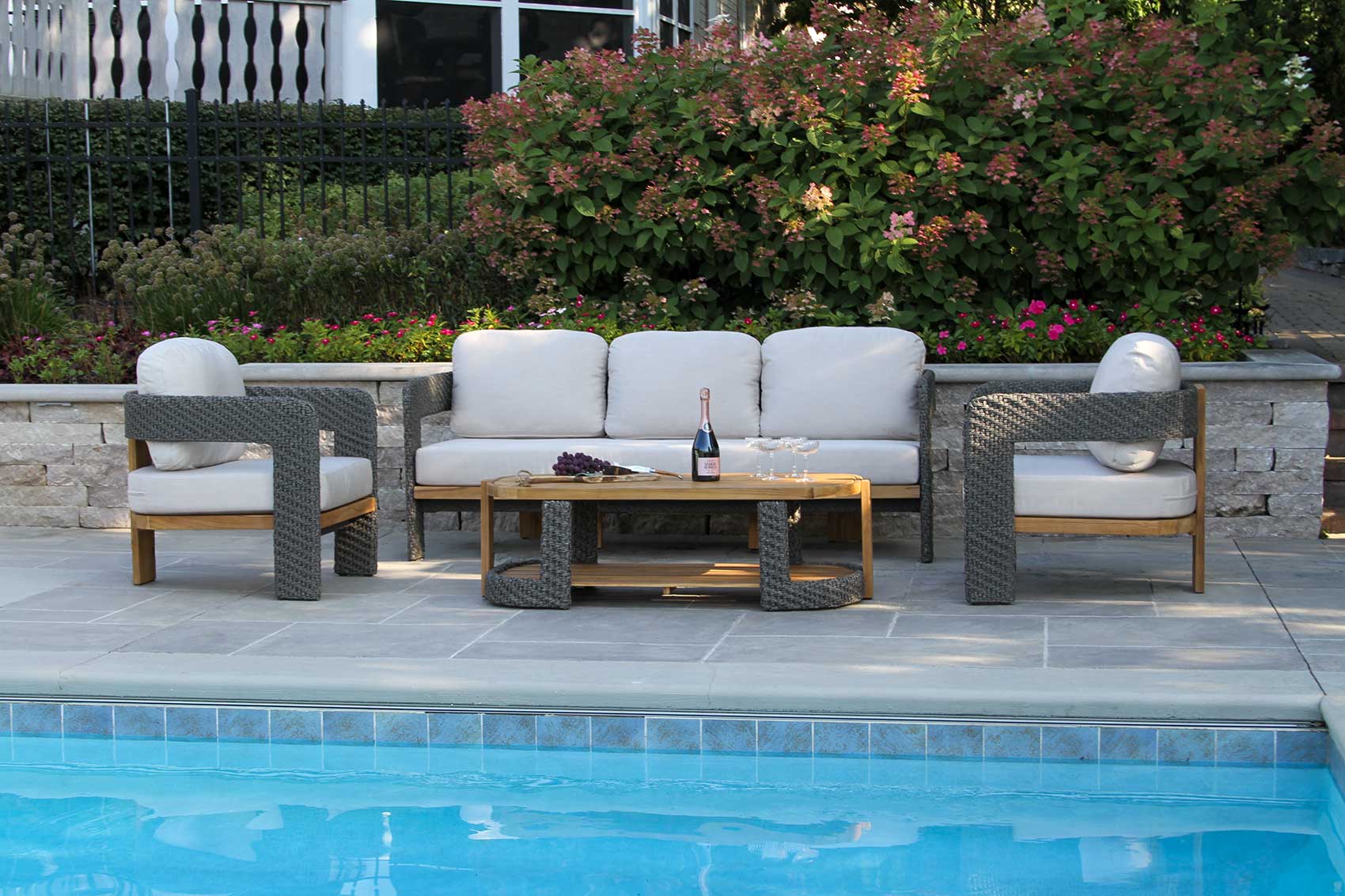 If a vintage grey patina is desired, various water-based conditioning products are available today that will colorize and preserve the teak. A natural patina will occur if no products are used and left outdoors.